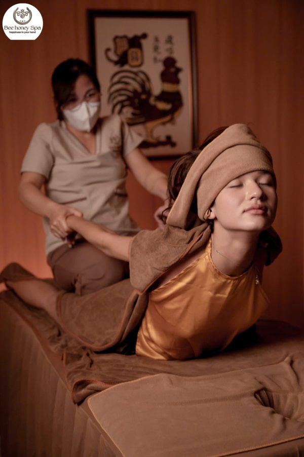 One of the highlights of Thai massage at Bee Honey Spa is the yoga-like stretching movements. Clients are gently guided into poses that stretch the spine, extend the legs, and rotate the joints. These movements are performed smoothly yet deeply, helping to improve flexibility, enhance mobility, and promote overall body balance.